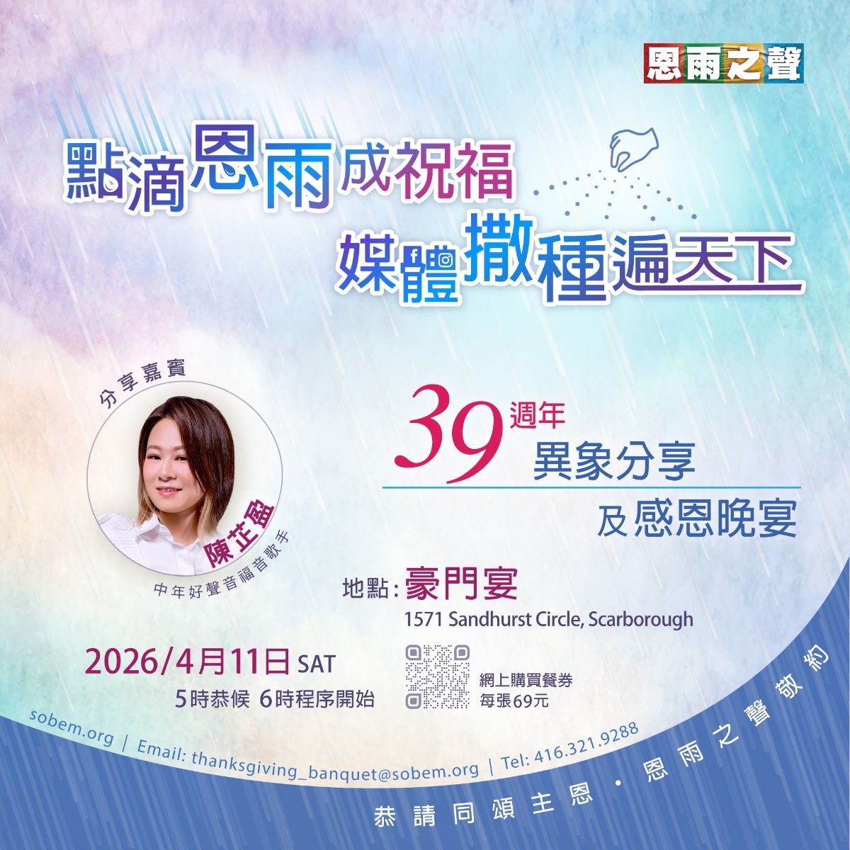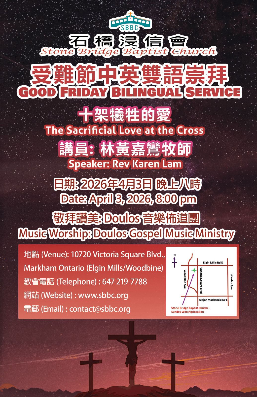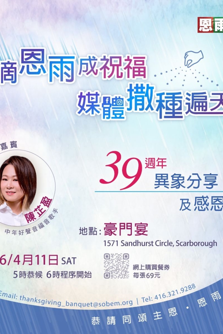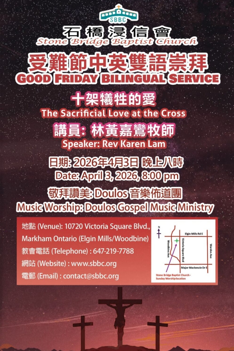 HOME 我們的事工 恩雨之聲39週年異象分享及感恩晚宴 Apr 11, 2026 (Saturday) ...Read More 石橋浸信會受難節中英雙語崇拜 Apr 3, 2026 (Friday) ...Read More 基智商滙實體佈道會”天地之主與神州大地” Feb 1, 2025 (Sunday) ...Read More 我們的音樂 VIDEOS